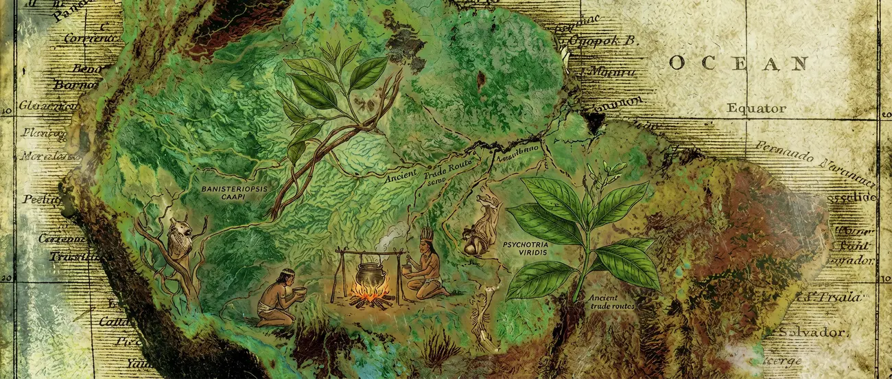 Ayahuasca originates in the Amazon Basin, spanning regions of present-day Peru, Brazil, Colombia, Ecuador, and beyond. Its use dates back hundreds — possibly thousands — of years.